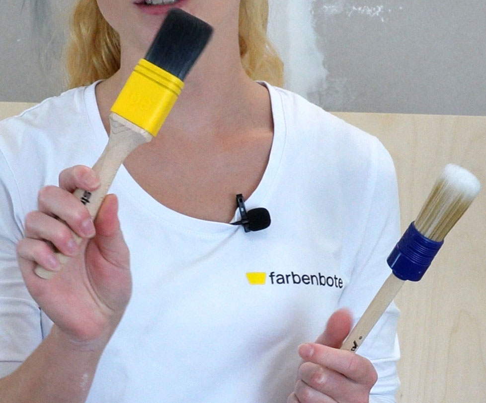 Bevor ihr euch für einen Pinsel entscheiden könnt, solltet ihr wissen, welches Material ihr verarbeiten möchtet. Ist es ein lösemittelhaltiger Lack, ein wasserbasierter Lack oder ganz normale Wandfarbe?