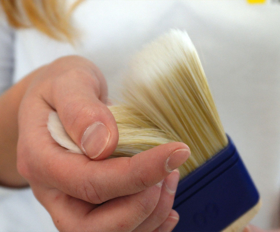 Früher haben Pinsel hauptsächlich aus Naturhaarborsten bestanden. Deshalb musste man sich damals keine Gedanken darum machen, welches Material mit dem Pinsel aufgetragen wird.